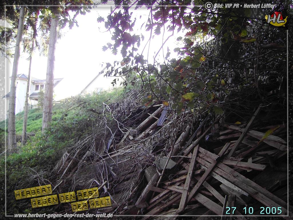 ...auf meinem Grundstück illegal angelegt und hierzu sogar ungefragt meine Bäume gefällt, das zugehörige Holz entwendet hat, wurde später noch dummdreist und rechtswidrig für die Würdigung des Altförsters Köberlin missbraucht (seitdem existiert hier angeblich ein "Arnold-Köberlin-Weg").